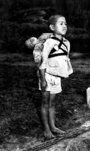 Niño del olvido que camina frío entre tibios, sobre el suelo aún cenizo del conflicto,