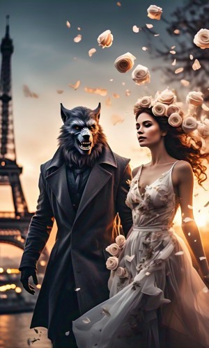 Una noche el lobo pretendía pasarse de listo en medio de las inmensas olas de nubes que se creaban después de un atardecer rosado. Entonces la vida en rosa, vinieron a la dama vestidos con muchas flores y dejó de ver todo en oscuridad, el prisma de su mundo volvió a iluminar la gran mansión y el hombre lobo la esperaba sentado en ese viejo sofá enfrente del ropero donde tendía los antiguos sombreros de los viajes a los que acostumbraba a hacer. Pero la noche en que la conoció empezó a murmurar su nombre en los sueños que lo despertaban para iniciar el día, sin embargo, había sido un solitario lobo que veía el mundo a través de su ventana, todos sus amigos habían seguido con sus vidas mientras que él se alegraba con los demás animales que convivían en su mansión.