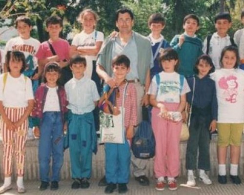 rodeado de compañeros y maestro,